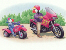 Quand vous montez sur votre moto, vous arrivez tous les deux en meme temps.