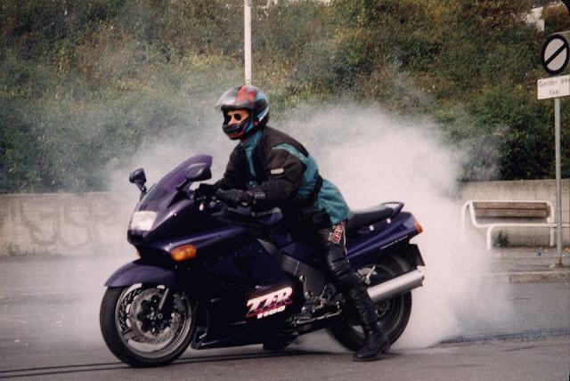On n'est jamais au bout de l'accélération, le wheeling vient avec une facilité ... Et même des fois quand on ne le demande pas (là ,ça surprend). On atteind les 230 avec une aisance... Euh par contre, quand tu prends un pétit trou sur la route et que la poignée tourne d'un coup sec sans que tu l'ai voulu, ça tire un peu sur les bras.